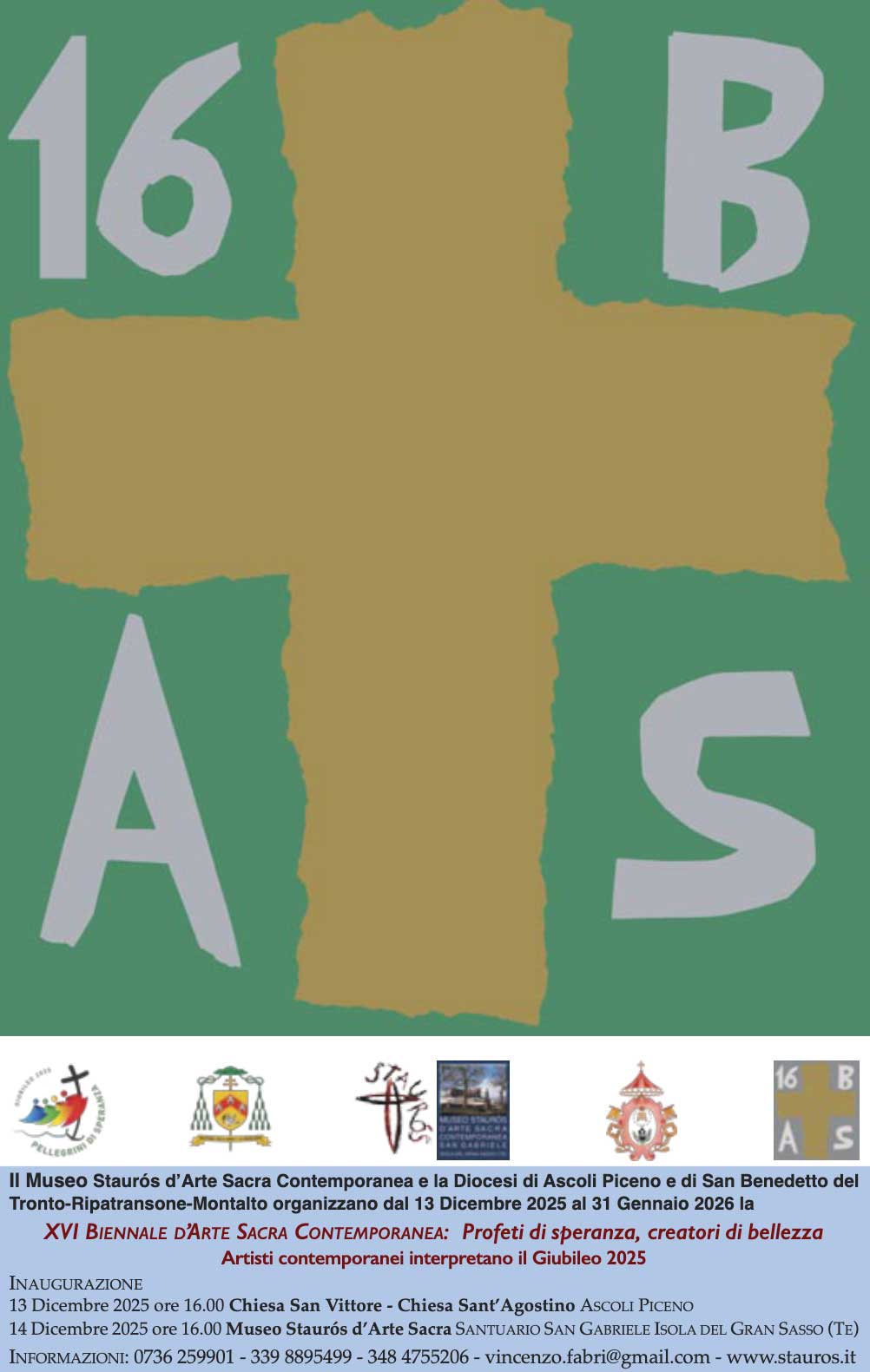 ‘Profeten van hoop, scheppers van schoonheid’ is het thema van deze 17e editie van de BIENNALE D’ARTE SACRA CONTEMPORANEA die plaatsvind in het jubeljaar 2025. De expositie locaties zijn twee kerken, de Chiesa San Vittore en de Chiesa Sant’Agostino in Ascoli Piceno, en het klooster Santuario di San Gabriele (Museo Staurós d’arte sacra contemporanea) in de Gran Sasso. Ruim vijftig kunstenaars exposeren er hun werk. Mijn bijdrage aan de expositie zijn twee werken, nl. ‘Der Dom’ en ‘Cappella’ waarvan Der Dom mijn eerste bronzen landschap was uit 2010 en Cappella een van mijn laatste. Voor wie in de buurt is: de drie locaties zijn dagelijks, behalve op maandag te bezoeken van 10:00-13:00 – 15:00-18:00 uur.